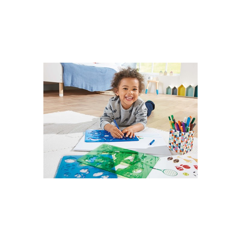 مجموعه 6 عددی شابلون طرح پرنسس یونایتد آفیس موجب تقویت مهارت های نقاشی، رنگ آمیزی، حرکتی و همچنین پرورش قوه تخیل، تفکر منطقی و خلاقیت در کودکان می شود. این شابلون های برای استفاده همراه ابزارهای مختلف نقاشی و رنگ آمیزی مانند مداد رنگی، آبرنگ و غیره کاملا ایده آل بوده و یک هدیه عالی و جالب برای کودکان است. شابلون پرنسس یونایتد آفیس که از مواد اولیه و پلاستیک نو تولید شده ، کاملا با دوام بوده، قابل شستشو می باشد و تا بارها می توانید از آن استفاده کنید.مجموعه شابلون یونایتد آفیس مدل پرنسس حاوی 6 عدد شابلون با طرح های متنوع، زیبا و جذاب است. همچنین شامل 6 عدد مقوا نمونه دارای طرح چاپی دورو رنگی و سیاه-سفید می باشد که می تواند جهت نقاشی و طراحی مورد استفاده قرار گیرد. این محصول وسیله ای سرگرم کننده و مناسب جهت آشنایی کودکان با نحوه ترسیم اشکال، نقاشی و رنگ آمیزی می باشد.