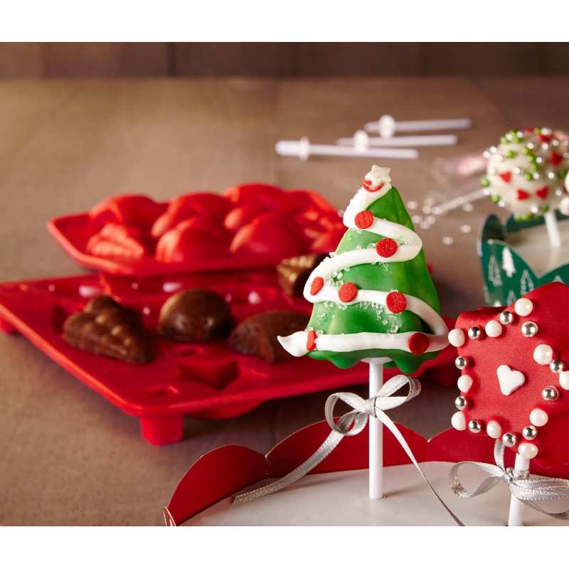 شیرینی پزی یکی از هنرهایی ست که برای بهتر به چشم آمدن،نیازمند وسایل مخصوص به خود می باشد از این رو ما این ست فوق العاده خلاقانه را به شما پیشنهاد می کنیم زیرا این ست برای پخت انواع کیک و شیرینی ویژه ی پذیرایی مناسب می باشد. از دو قالب صفحه ای و 50 عدد چوبک پلاستیکی تشکیل شده است . با این محصول می توانید در هر سری ، 14 عدد پاپ کیک یا شیرینی در 5 شکل متفاوت که شامل اشکال قلب ، درخت ، ستاره و کُره که قابلیت قرار گیری در دمای -30 الی +230 درجه سانتیگراد میباشد،بپزید و میهمانان یا عزیزان خود را سورپرایز کنید . حتی می توانید شکلات های خوشمزه و خاص مختلفی را با این قالب درست کنید و لذت شیرینی پزی متنوع را احساس کنید. البسه قابل گفتن میباشد که از 100 % پلیمر انعطاف پذیر ( سیلیکون ) تهیه شده است که بی نهایت نرم و انعطاف پذیر میباشد.