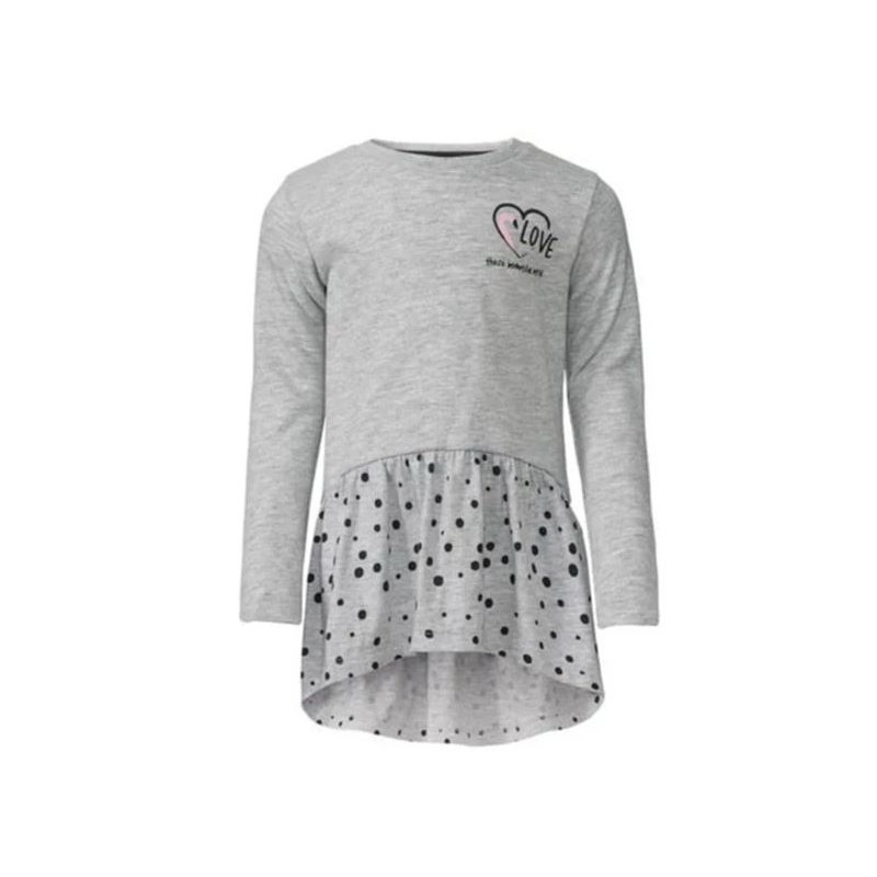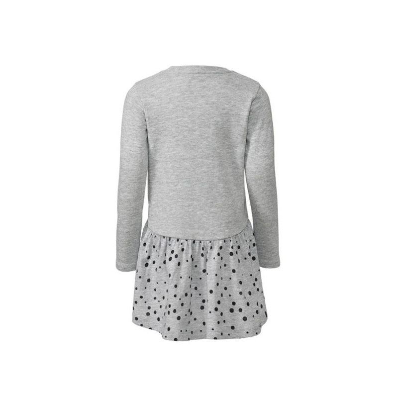 پیراهن آستین بلند چین دار بسیار جذاب برای کوچولو های از سنین 4 تا 6 سال در نظر گرفته شده است. این محصول بسیار زیبا با رنگ خاکستری و در قسمت دامن لباس دارای خال های مشکی میباشد که به لباس جذابیتی بسیار زیاد را خواهد داد. این محصول مناسب برای فصل پاییز و زمستان میباشد زیرا دارای جنسی بی نهایت نرم و با کیفیت است که قابل استفاده برای این فصول از سال نیز میباشد. در قسمت سینه دارای نوشته ای دخترانه و فلامینگو دارد که لباس را از سادگی در آورده است. یقه لباس گرد با برش دوختی بسیار شیک و جذاب با مواد تشکیل دهنده: 80% پنبه+ 20%پلی استر و جنس دامن: 95% پنبه+5% پلی استر بوده است. همچنین این محصول دارای استاندارد سلامت و بهداشت کالا OEKO-TEX 100 میباشد.
