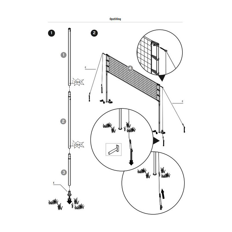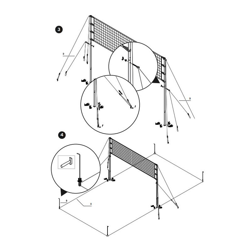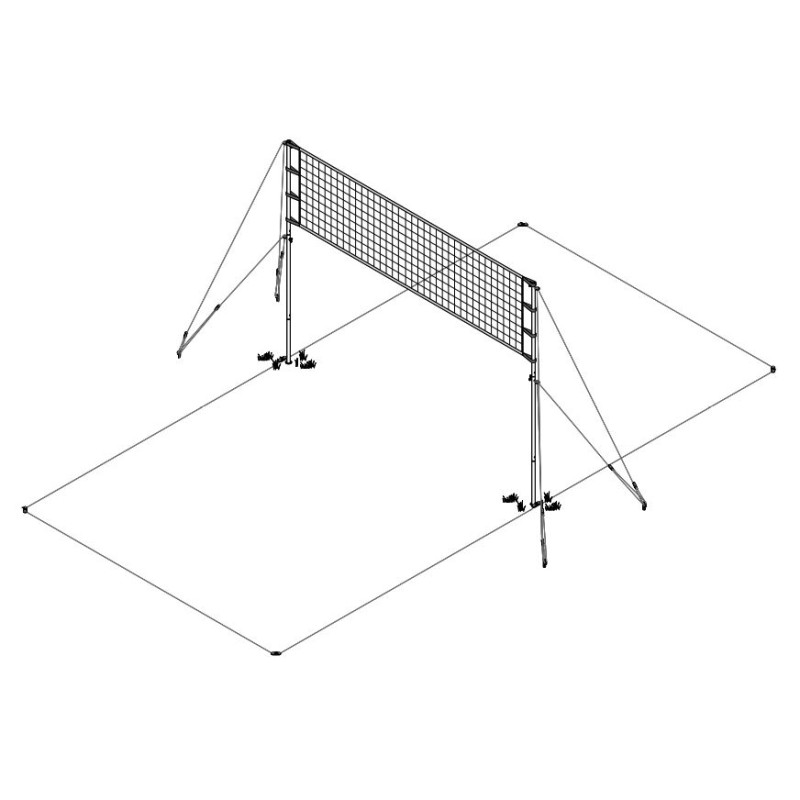 | خواص / ویژگی | دارای دو پایه سه تکه با مکانیسم چفتی - به همراه 4 ریسمان قلاب دار نگهدارنده پایه تور والیبال |
